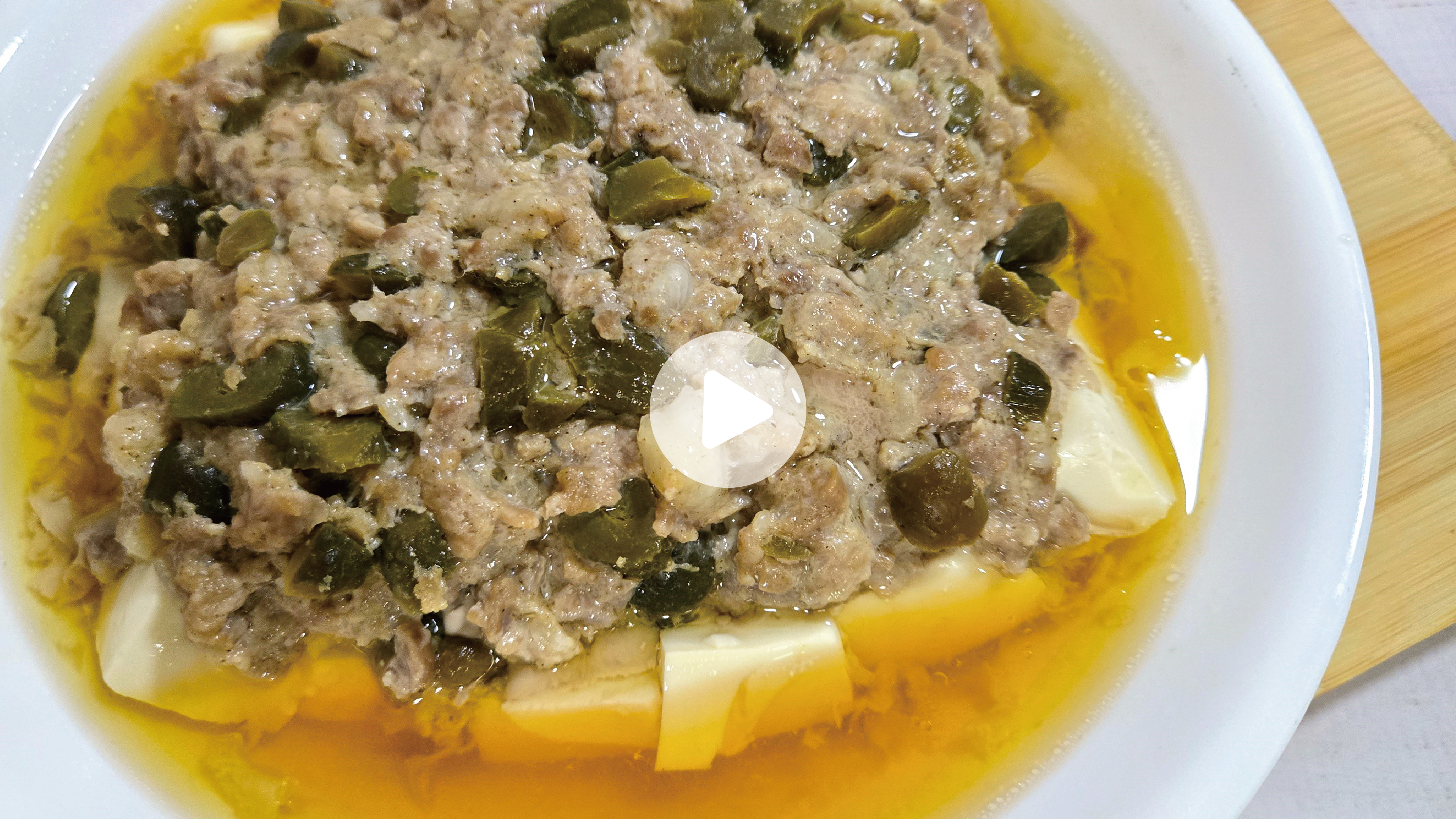 3.盤子放上豆腐,鋪上瓜仔肉
